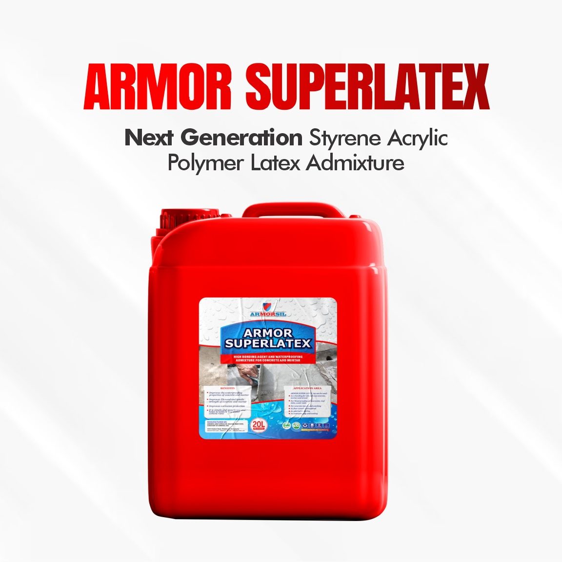 ARMOR SUPER LATEX 100 is a next-generation Styrene acrylic polymer latex admixture that is designed as an integral adhesive for cement, bond coats, mortar, and concrete to improve bond strength, compressive strength, chemical resistance, and waterproofing properties.